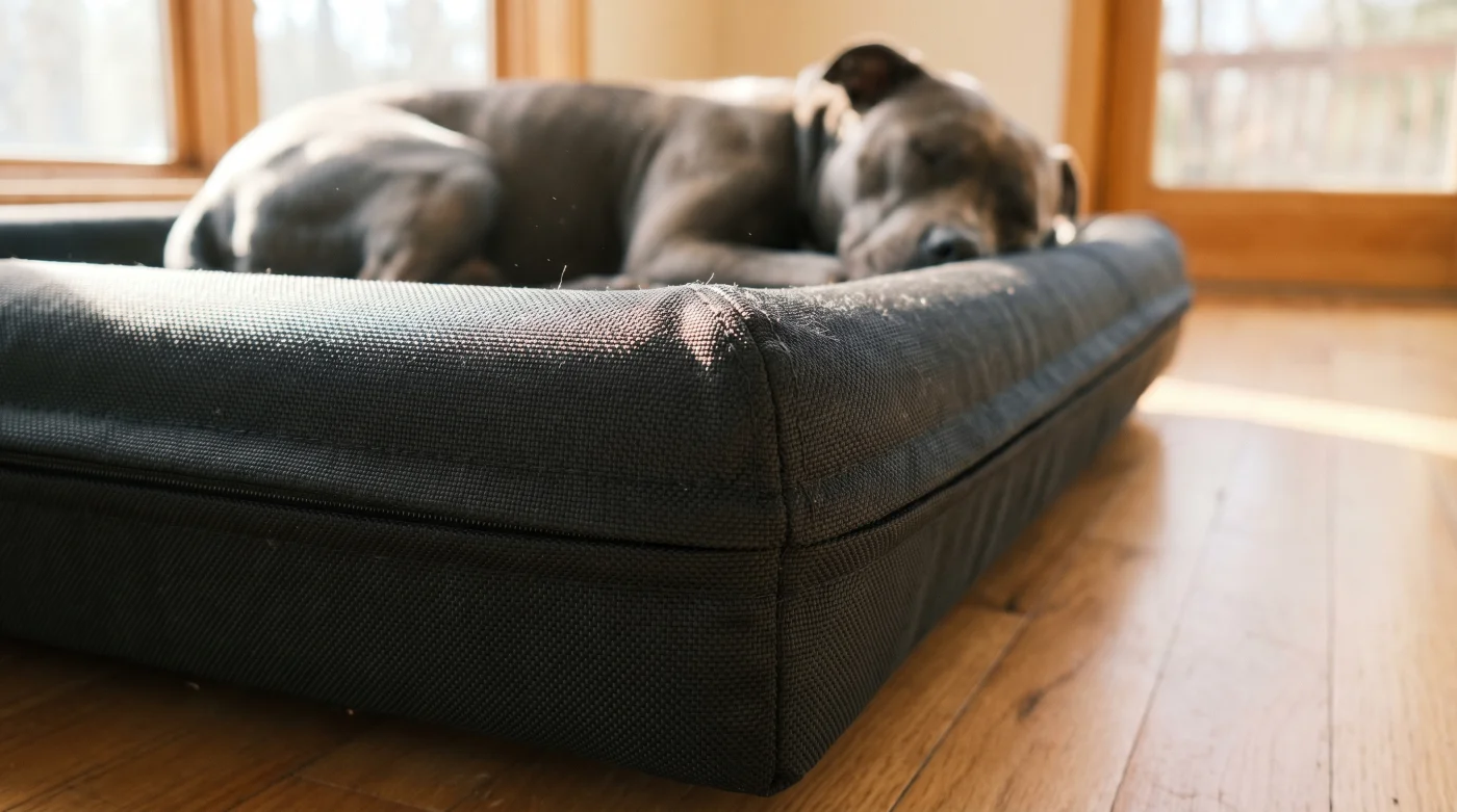 The tearing sound starts low, like thick paper ripping slowly in the next room. You walk into the living room, coffee mug in hand, to find a miniature snowstorm. White polyester batting drifts lazily across the hardwood floor, clinging to the baseboards and catching in the rug. In the center of the carnage sits your dog, panting lightly, looking remarkably proud of the hollowed-out shell that used to be a premium, supposedly chew-proof dog bed. The tags claimed it was military-grade. Your living room suggests otherwise.